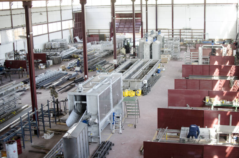 🔹 Carrilería aérea y transportadores: Sistemas de vía aérea, birraíl, T-H, bastidores y soluciones logísticas para el manejo de canales y productos.